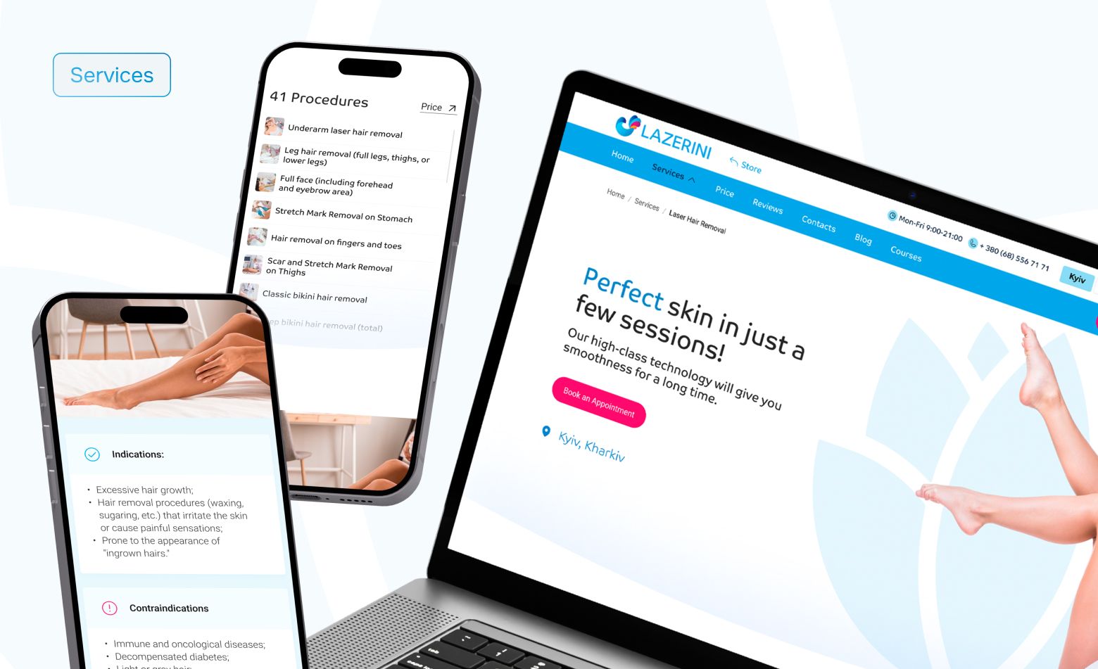 Lazerini offers aesthetic medicine and laser hair removal. The clinic had an outdated website that didn’t meet modern standards.