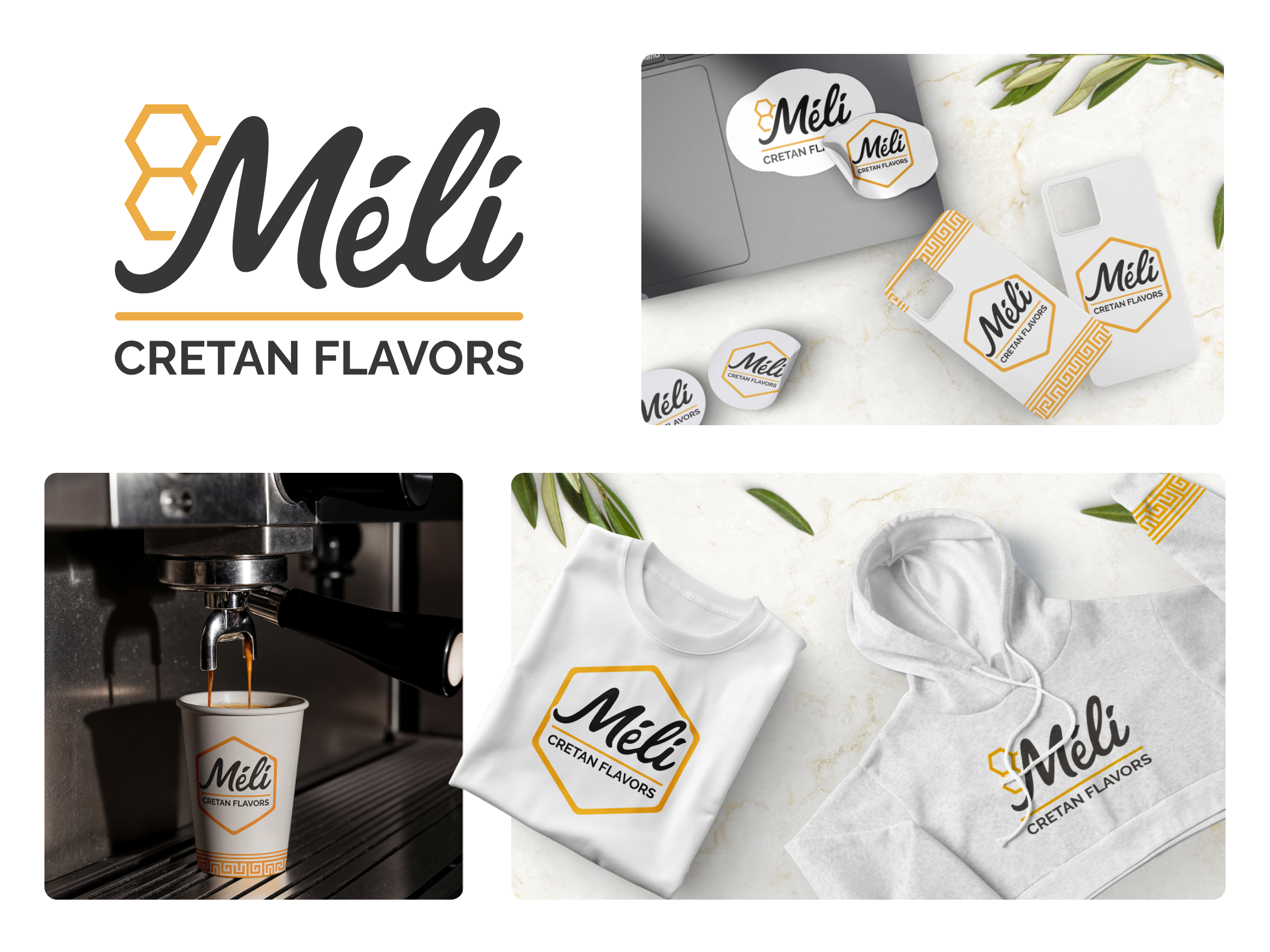 Meli is a cozy coffeehouse in Switzerland that embraces Greek culture and aesthetics. The name translates as “honey,” which became the central metaphor of the brand identity. The concept was to create a warm and inviting space where modern minimalism meets traditional Greek heritage.