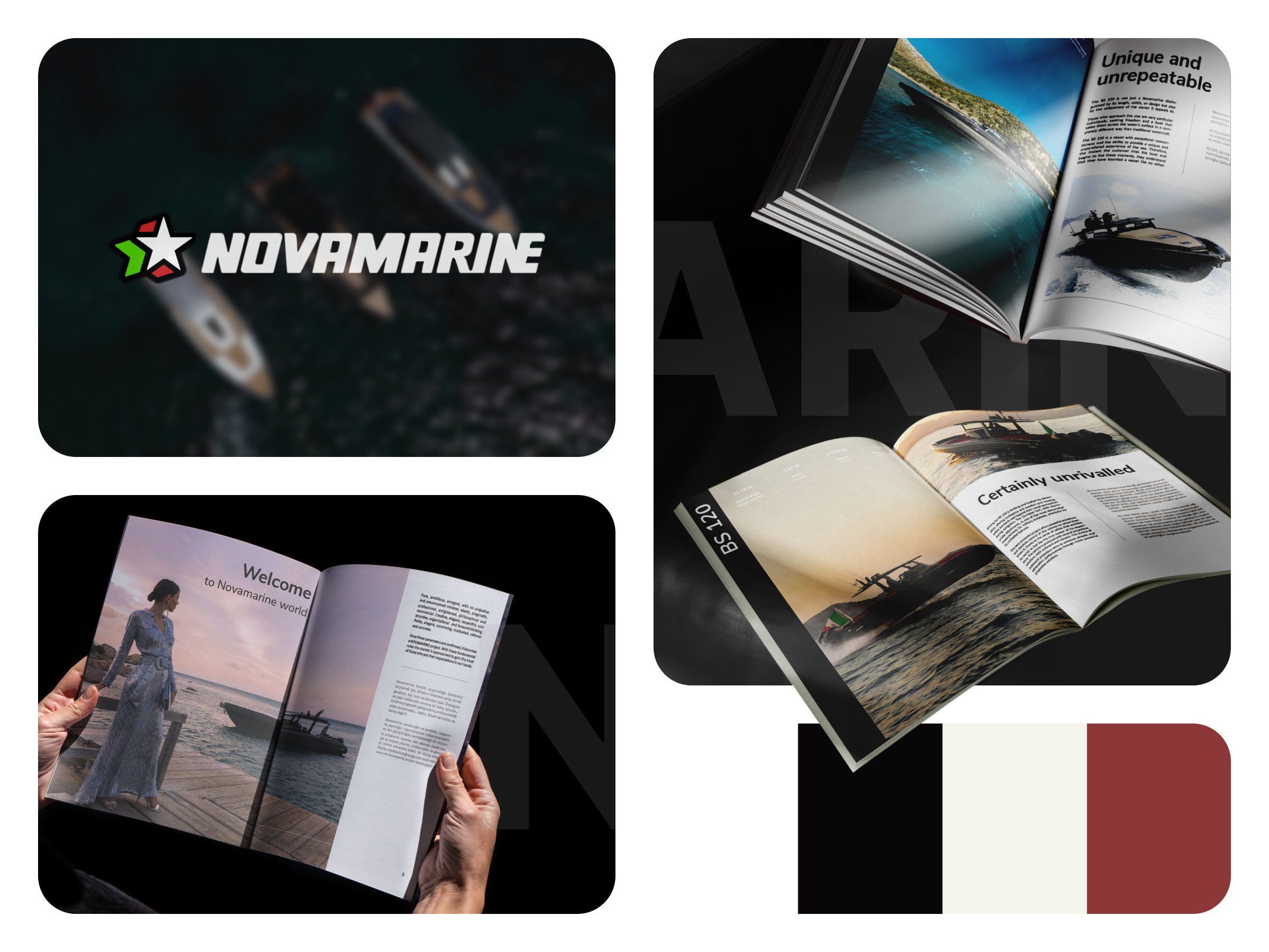 Our team of designers participated in the creation of an 80-page magazine that fully captures Novamarine’s essence. The magazine is meticulously crafted in a clean, minimalist design that prioritizes exceptional readability and visual storytelling. Particular attention is given to each boat, which is presented with high-quality photography and full technical specifications. The magazine has a roomy layout with plenty of white space and carefully chosen font that smoothly combines technical accuracy with flair for design.