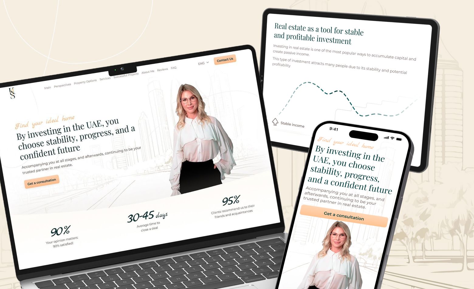 The brand’s main objective is to become a trusted partner, offering a transparent property buying process and a high level of service. The client requested a premium website in light pastels, featuring completed projects and quick access to locations, homes, and benefits.